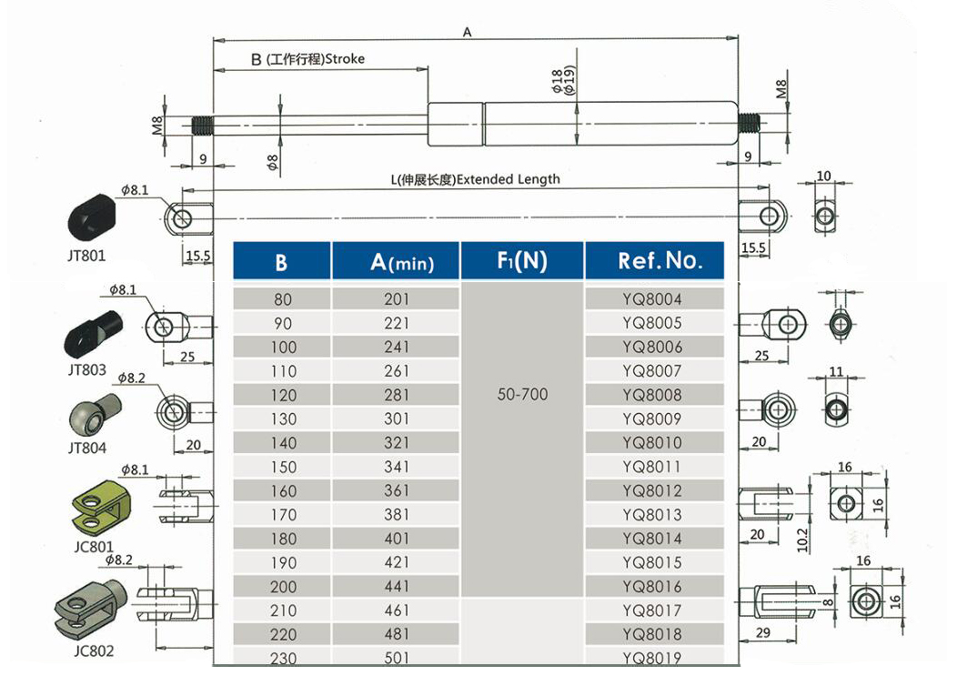 注:由于氣彈簧是非標(biāo)準(zhǔn)的,以上僅為型號(hào)的一部分。我們可以根據(jù)客戶的要求定制。